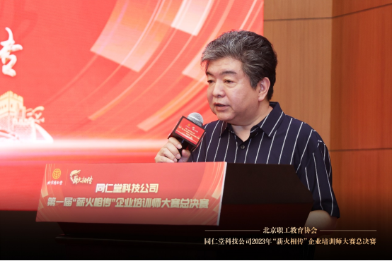 北京职工教育协会会长许杰代表评审组发言,他从企业培训师专业的角度,为选手们进一步提升给出了自己的建议。他表示,“培训是改变认知,改变行为的方式,对于企业来讲,更是改变行为,改变生产的重要源动力。在明确此概念的基础上,其实任何主题任何角度的讲授,都有一以贯之的逻辑:在充分把握企业文化的基础上,将自己培训的整体内容有层次有架构地设计好,并运用工具、着装、场控、提问互动、肢体语言等有效方式辅助讲授,已达到最佳效果。”